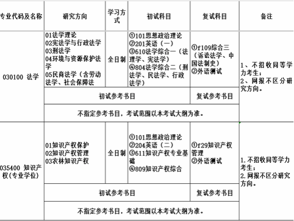 法学一级学科硕士学位点下设法理学、宪法学与行政法学、民商法学、刑法学、环境与资源法学、技术成果转化服务六个学科方向。主要培养具有良好的法律职业道德、法学理论素养和法律实务技能的高层次法学专门人才。同时聚焦生态、环境、资源等领域的法学研究,不断推进学科交叉融合发展,探索“生态法治高水平人才”培养模式,形成了特色鲜明的生态法治人才培养体系。全日制学制3年,计划招生19人。