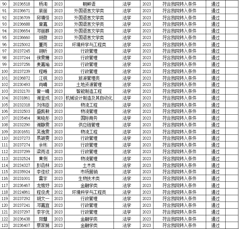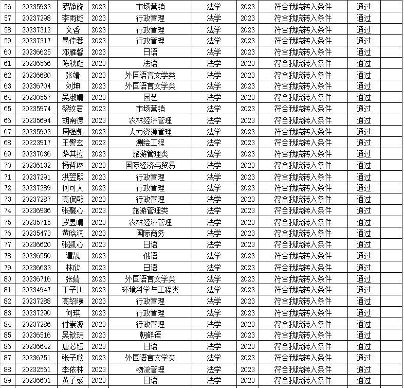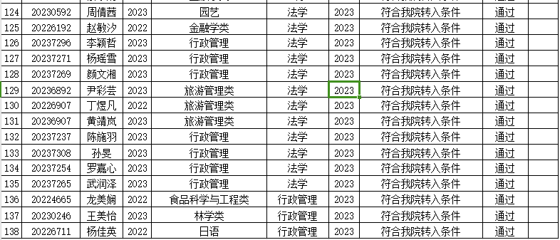 本次我院共收到138名学生提交的转专业申请,经审查,有贺泉泉等138名同学通过报名资格审查,现将名单予以公示。公示期为2023年12月8日至2023年12月10日。