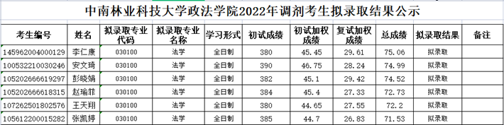 拟录取结果以上级主管部门录取审核通过为准。体检不合格者不予录取。考生可登陆学校研究生招生管理系统(网址:https://yjszs.csuft.edu.cn/,账号为考生本人身份证号,密码为身份证号后6位)查询成绩。