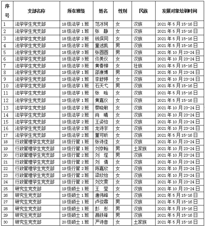经各党支部教育、培养和考察,党内外群众了解,政治审查,学院党委预审,各党支部讨论、投票表决,拟接收范冰珂等30位发展对象为中共预备党员,现将有关名单公示如下: