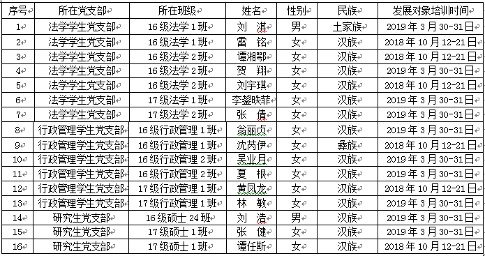 学院党委会议对各支部上报的党员发展和预备党员转正名单进行审议,刘淇等16名发展对象通过预审,拟发展为中共预备党员,拟将包蕊等15名同学转为中共正式党员。具体名单如下:
