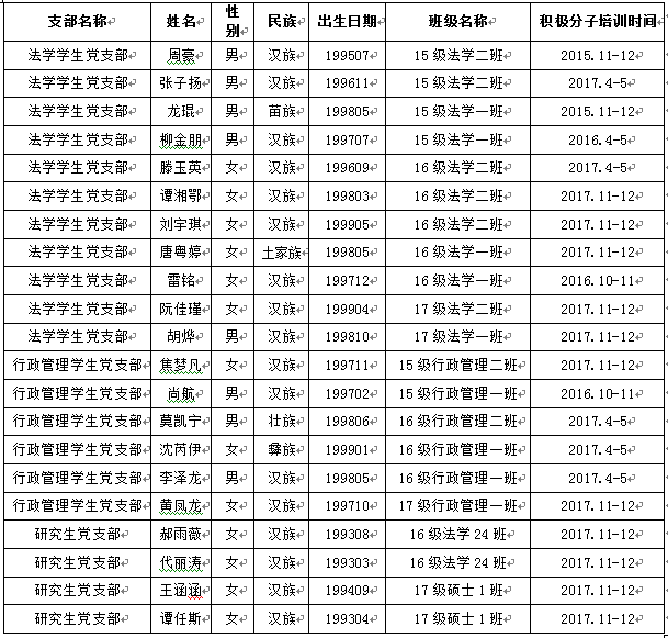 根据本人申请、党员会议推荐、党内外群众交流等多途径了解情况,经各党支部讨论同意并报学院党委审批,拟推荐下列21位同志参加学校第6期党员发展对象培训班学习,现将其基本情况公示如下: