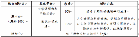 (1)综合测评的附加分在10-20分(含10分,不含20分),第1至6学期所修课程平均成绩可放宽至专业排名前40%以内(其它条件不变)。