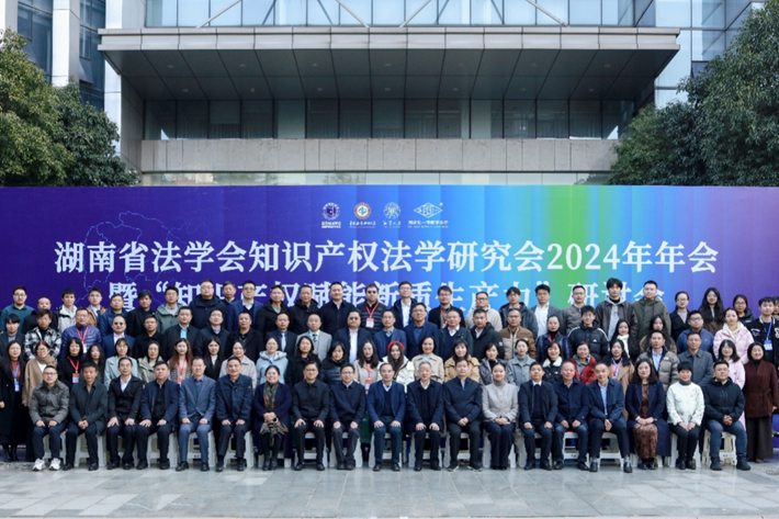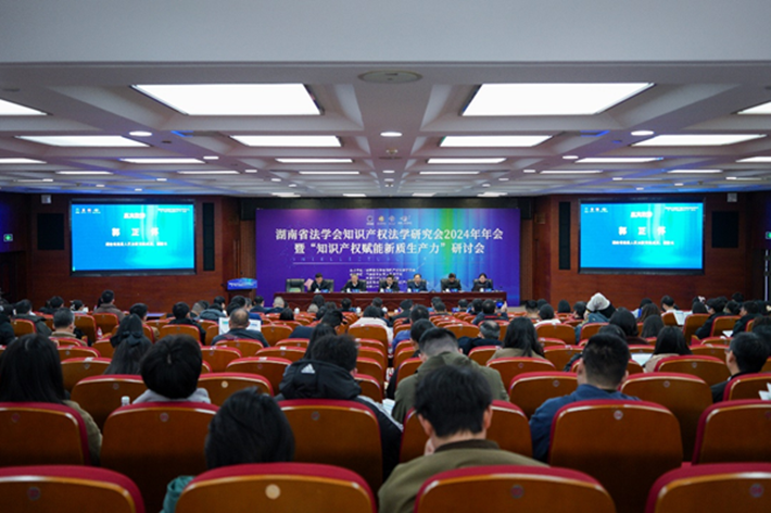 12月29日,湖南省法学会知识产权法学研究会2024年年会暨“知识产权赋能新质生产力”研讨会在我校举行,本次研讨会由湖南省法学会知识产权法学研究会主办,我院和湘潭大学知识产权学院承办,国家高校(湘潭大学)知识产权信息服务中心和湖南泓一律师事务所协办。中国知识产权研究会、湖南省高级人民法院、湖南省人民检察院、湖南省市场监督管理局(知识产权局)、湖南省法学会、长沙市中级人民法院、郴州市中级人民法院等部门领导,湖南省知识产权保护中心、长沙保护中心、湘潭保护中心等的实务精英,华东政法大学、中南财经政法大学、华南理工大学、中南大学、湖南大学、湖南师范大学等省内外院校的专家学者,以及大型创新企业及知识产权管理人员、中介机构人员等300余人齐聚一堂,就“知识产权赋能新质生产力发展”从多维度展开交流与研讨。