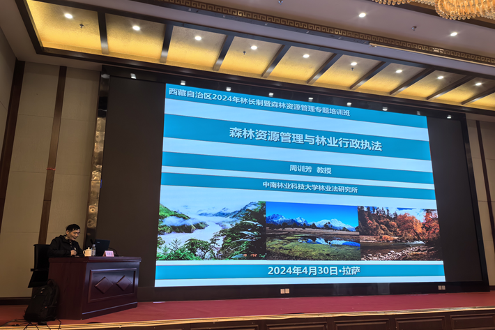 应西藏自治区林长办公室邀请,周训芳教授于2024年4月30日在拉萨市作题为“森林资源管理和林业行政执法”的专题讲座。讲座由西藏自治区林草局森林资源管理处(林长办公室工作处)处长熊艳阳主持。西藏自治区林草局副局长刘学庆出席并致欢迎辞,西藏自治区三级林草部门分管领导和森林资源管理负责同志听取了专题讲座。讲座中,周训芳教授结合西藏自治区林长制工作实际,对《森林法》《青藏高原生态保护法》等法律的规定进行了全面解读。周训芳教授提出,西藏是青藏高原的主体,保护好青藏高原森林资源事关中华民族生存和长远发展。西藏自治区森林资源执法的重点任务,是通过完善林长制工作机制,实现“三绿”并举、“四库”联动,推动林草事业高质量发展,创建国家生态文明高地。讲座后,周训芳教授在西藏自治区林草局森林资源管理处(林长办公室工作处)处长熊艳阳陪同下,考察了西藏自治区天然林保护、南北山绿化工程、湿地保护等情况,并与西藏自治区林草局、昌都市林草局有关同志进行了广泛交流。