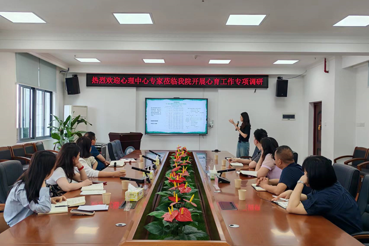 2024年5月16日上午,学校心理健康教育中心主任袁红梅教授率队来我院开展2024年春季学期心理健康教育工作专项调研,学院党委书记蔡洁对袁红梅主任一行的到来表示热烈欢迎,学院党委副书记梁旭、全体辅导员参与调研。