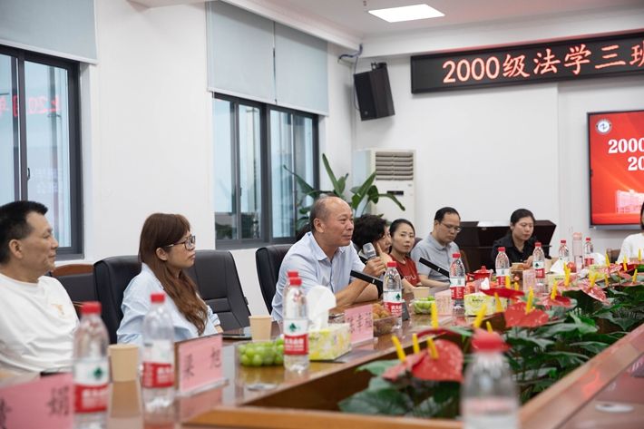 629日,2000级法学三班二十多名校友重返母校在博文楼南1109召开“饮水思源  笃行致远”主题班会,师生共叙情谊。学院党委副书记梁旭与校友聂海平共同主持班会