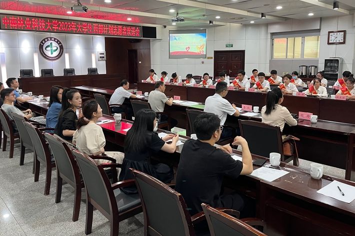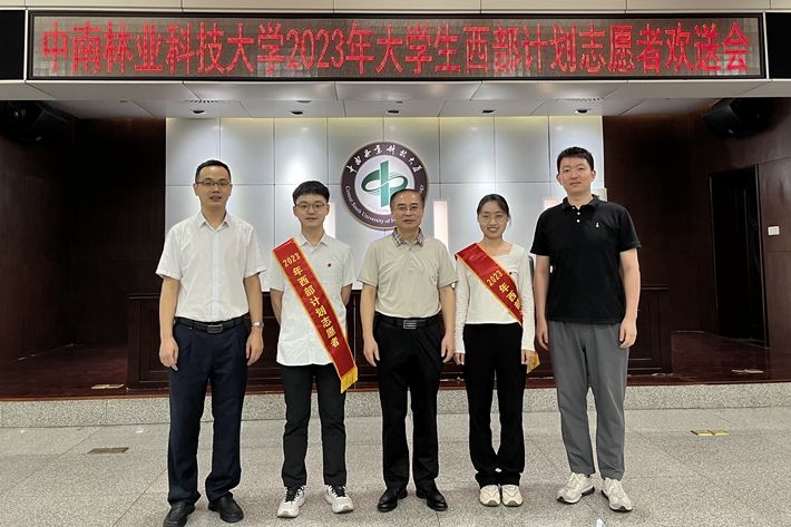 6月20日,在西部计划服务项目实施20周年之际,“中南林业科技大学2023年大学生西部计划志愿者欢送会”在我校崇德楼4会议室顺利举办。学校学校党委委员、副校长尹健,校团委书记李凯,副书记殷丹,校友办主任张仕吉出席会洗,包括我院王子恒和包霞霞在内的全校共计29名优秀志愿者参加会议。