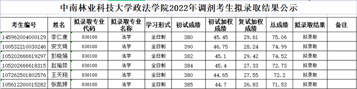 政法学院2022年硕士研究生招生考试调剂考生拟录取结果公示