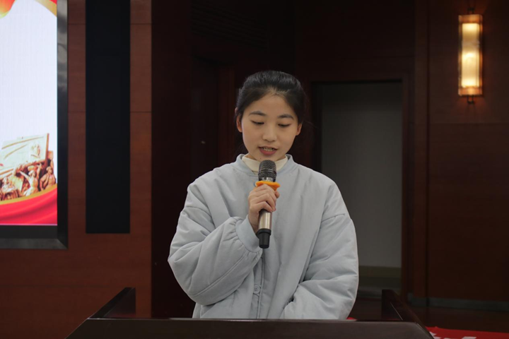 紧接着,由学生代表熊闵雯带领全体人员进行庄严宣誓和宪法晨读。铮铮誓言,宣示着宪法作为国家根本大法的神圣地位,传递着政法学子弘扬宪法精神的决心和毅力。学生代表田灿随后发言,她从自己切身感受出发,概括了宪法在政治生活和社会生活中的重要作用,并表达了同学们积极学习和普及宪法知识的责任与担当。