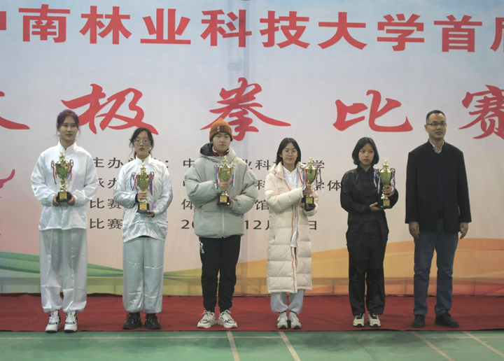 2021年12月18、19日,中南林业科技大学首届大学生太极拳比赛在我校体艺馆隆重举行。本次比赛分为个人与团体两个赛项,分别于18日、19日进行。在18日进行的个人赛中,我院2021级法学一班的赵家骏和法学二班的廖凯同学均荣获男子组个人二等奖,2021级法学二班刘思思和赵蒙纳同学则分别荣获女子组二等奖和三等奖。在19日上午进行的团体赛中,经过激烈角逐,我院代表队以优异表现夺得团体三等奖。
