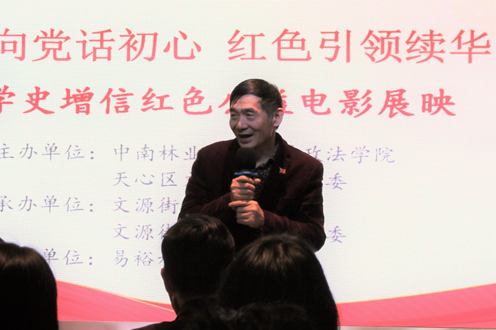 为推进党史学习教育走深走实,让广大党员、群众在学“党史”中不断感悟,进一步汲取精神力量,升华理想信念。2021年4月29日下午3时,中南林业科技大学政法学院与天心区文源街道党工委联合主办的“青春向党话初心,红色引领续华章”学史增信红色电影展映活动顺利开展。