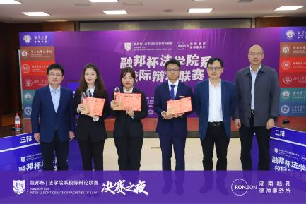 经过现场激烈的角逐,综合现场表现和个人发挥,评委进行认真负责的打分,湖南大学法学院代表队获得本次比赛冠军,中南林业科技大学政法学院汪仁杰同学和湖南大学法学院吕婉婷同学分别获得本次比赛的“最佳辩手”称号。