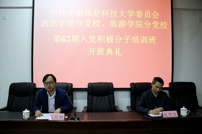10月25日晚七点,政法学院、旅游学院分党校第63期入党积极分子培训班开班典礼和第一堂党课于博文楼南905举行。学校党委委员、副校长严曙光教授进行第一堂党课授课。旅游学院党委书记张学文出席本次活动,会议由政法学院党委书记闫昌明主持。政法学院、旅游学院入党积极分子和班主任参加此次开班典礼和党课培训。