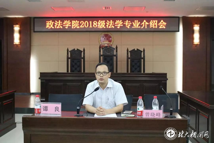 9月17日晚,政法学院2018级本科及研究生新生见面会在博文楼模拟法庭举行,学院院长王飞跃、副院长谭良、法律系主任阳永恒、行政管理系主任熊玲君、新生班主任、辅导员参加会议。党委副书记曾晓峰主持会议。