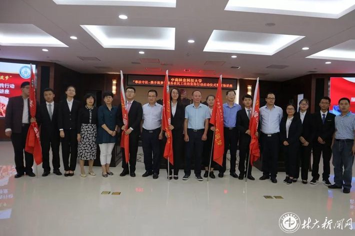 9月29日,中南林业科技大学2018年“尊法守法.携手筑梦”服务农民工法治宣传行动启动仪式暨首场法治讲座在博文楼模拟法庭举行。学校工会常务副主席陈树生教授、政法学院院长王飞跃教授,以及“法律志愿服务队”的领队教授参加了启动仪式。仪式由政法学院党委副书记曾晓峰主持。