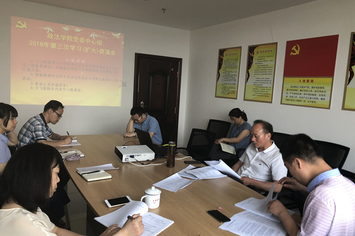 5月17日上午,政法学院党委在文科楼北708会议室召开中心组学习会议,继续深入学习贯彻全国全省高校思想政治工作会议精神。学院党委班子、教工和学生党支部书记参加学习。