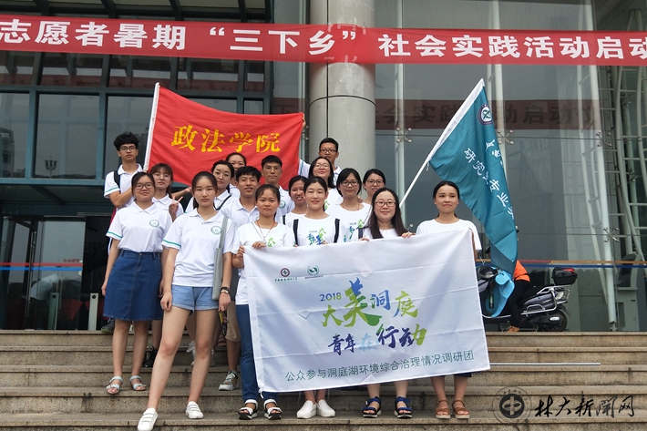 “三下乡”社会实践活动作为高校大学生实践教育体系的重要组成部分,学院高度重视,积极组织学生结合专业特色申报实践项目。7月6日下午,学校2018年大学生暑期“三下乡”社会实践活动启动仪式在图书馆前坪举行,我院本科生和研究生申报并获得立项的国情社情观察实践项目、“大美洞庭,青年在行动”专题项目和研究生暑期专业实践项目团队参加了启动仪式。其中,由周训芳教授和胡美灵教授指导的“大美洞庭,青年在行动”专题项目团队作为学校重点项目参加授旗仪式。