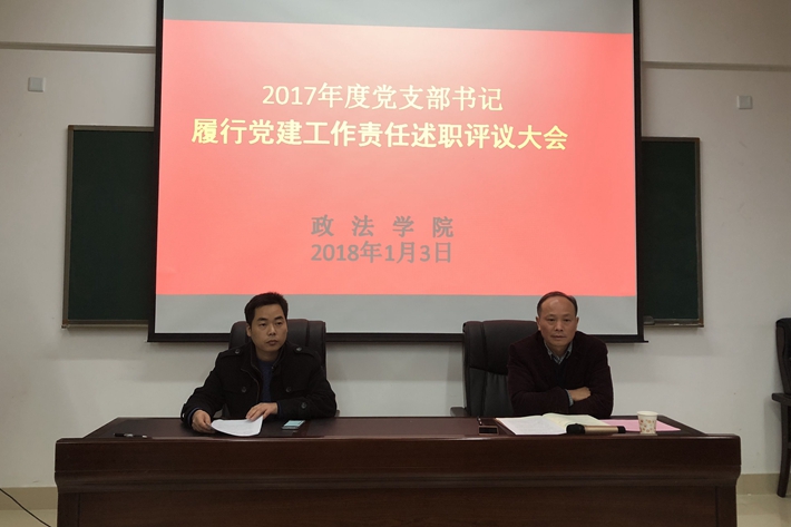 为深入贯彻学习党的十九大精神,全面落实党建工作责任制,推动全面从严治党向基层延伸,按照学校党委相关要求,1月3日下午,政法学院党委在文科楼南1105室召开了2017年度党支部书记抓党建工作述职评议会。学院领导班子、党委委员、各党支部书记,全体教工党员和学生党员代表参加了会议。会议由学院党委副书记曾晓峰主持。