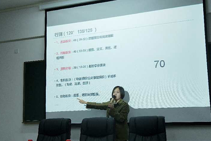 研究生学术报告结合自身学习与生活中的事例,生动形象地向同学们讲述着自己的经验与方法,现场气氛活跃。四位研究生从如何确立学习目标、公务员考试技巧、司法考试技巧、论文写作技巧、读研经历、学生干部经历、专业能力塑造等方面进行了分享。她们认为,读研要脚踏实地、要勤奋、要坚持、要摆正心态;写毕业论文要沉下心,与导师沟通论文构思,多查找和阅读文献,切记不要打疲劳战。