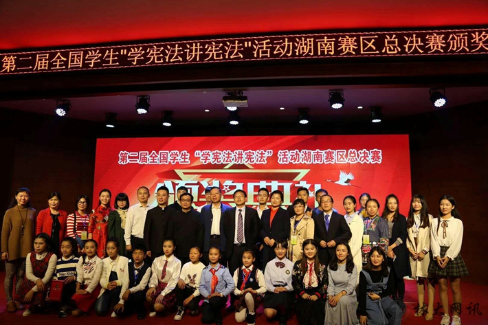 2017年10月14日下午,由教育部统一部署、湖南省教育厅主办的第二届全国学生“学宪法讲宪法”活动湖南赛区总决赛落幕。我校竞赛团队在学校团委和政法学院的指导下组建和训练,经过激烈角逐,我校政法学院师生取得优异成绩。在演讲比赛高校组中,2015级法学本科生王昕同学获二等奖,阳永恒副教授获优秀指导教师奖;在微课系列比赛高校组中,张小罗教授以《基因权力——项新兴的基本权利》作品获三等奖。