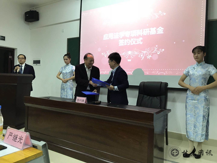 2017年11月1日晚,由中南林业科技大学政法学院与湖南融邦律师事务所合作设立的应用法学专项科研基金启动仪式在文科楼南1105室举行。湖南融邦律师事务所主任严继光先生、中南林业科技大学社会科学处处长蒋兰香、政法学院院长王飞跃、副院长谭良、党委副书记曾晓峰及部分专业教师参加了仪式。仪式由法学教研室主任阳永恒副教授主持。