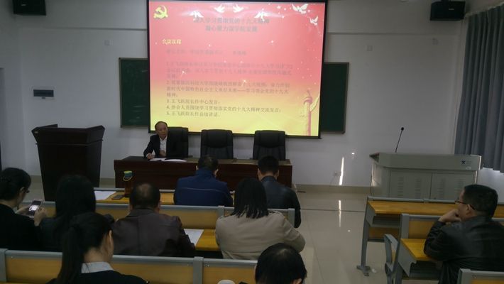 交流发言中,曾晓峰说,十九大报告提出了许多新要求新观点,令人印象深刻,更令人振奋。作为一名高校学生管理工作者,我们要坚持育人为本,立德树人,自觉维护教学工作的中心地位,将更多的时间与精力投入到学生教育管理中去,坚定信念,振奋精神,以高尚的道德情操和敬业精神当作对学生最生动、最具体、最深远的教育,做好学生发展的引路人;阳永恒说,十九大精神是建设法治社会和法治国家的纲领和指导思想。在推进依法治国的进程中,作为一名法学教师责任重大,既要培养具有高素养的法学人才,又要用法律知识服务社会、服务政府,为法治社会和法治国家建设贡献自己的力量;曾玉说,作为一名高校教师,必须具备高尚品德,才能培养高尚品德的学生。学院的发展要在人才培养质量上下工夫,办好人民满意的教育,要让学生满意、家长满意、用人单位满意、社会满意;参会其他同志依次进行了发言,结合十九大报告精神和岗位工作谈了自己的学习体会。