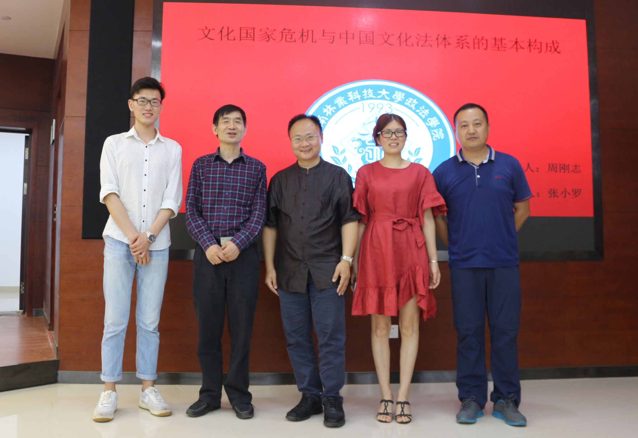 应政法学院邀请,中南大学法学院教授、博士生导师、中国文化法研究中心执行主任周刚志于2017年6月15日在模拟法庭为做了题为《文化国家危机与中国文化体系的基本构成》的学术讲座。政法学院院长周训芳、环境与资源保护法学术带头人向佐群教授及300余名学生参加了学术讲座。政法学院张小罗教授主持讲座。