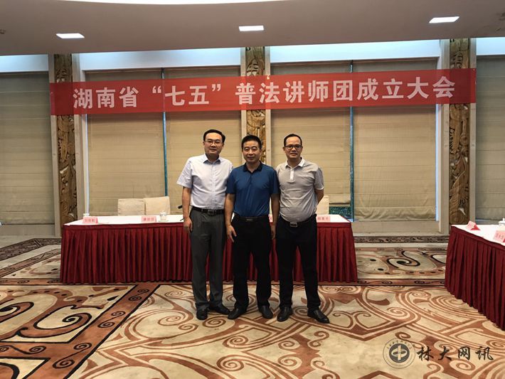 7月31日,由湖南省委宣传部、省委法治办、省司法厅组织的湖南省“七五”普法讲师团成立大会在长沙召开,31名法律基础扎实、授课经验丰富、政治素质可靠且热心普法事业的资深法官、检察官、行政执法人员、律师等加入普法讲师团,将深入全省各地各部门开展普法宣讲活动。我校政法学院阳永恒副教授受邀参会,并被聘为湖南省“七五”普法讲师团讲师,聘期五年。