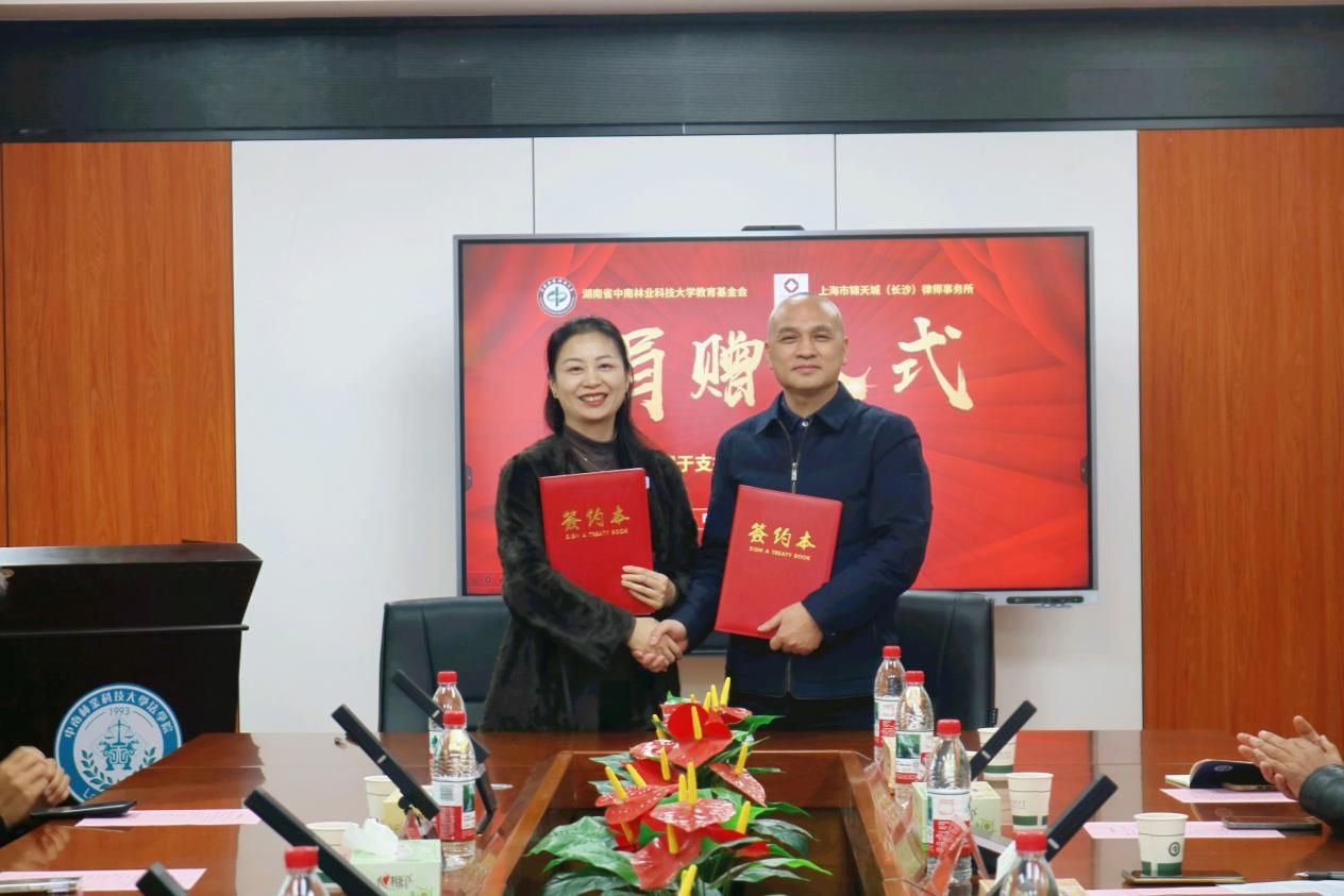 宁洁在捐赠仪式上表达了上海市锦天城(长沙)律师事务所对法学教育事业的高度重视与深切关怀。她表示,近年来中南林业科技大学法学院在培养高素质法律人才、服务地方法治建设方面取得了显著成就,上海市锦天城(长沙)律师事务所很荣幸能为此贡献一份力量。她希望此次捐赠能够为法学院的未来发展注入新的活力,同时进一步加深律所与校院之间的交流与合作,共同探索法学理论与实践相结合的新路径,为法治中国建设培养更多优秀后备力量。