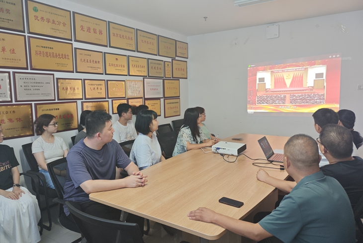 为迎接新中国成立75周年,激发和展示高校广大师生奋进强国新征程的强大力量,教育部围绕强国建设相关专题,在9-10月分9期开展“担当教育新使命 奋进强国新征程”2024年高校党组织示范微党课展播。9月4日(今天)下午16:00,法学院党委组织各支部师生党员代表集中观看了示范微党课(第二阶段)第1讲《坚持教育科技人才“三位一体”,奋力谱写中国式现代化宏伟篇章》。