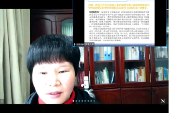 会议以线上方式举行,与会专家、学者们围绕“药品专利链接及相关制度”在云端展开热烈讨论。胡潇潇副教授以“我国上市药品专利信息登记制度的完善”为题,就我国上市药品专利信息登记制度存在的问题、产生问题的原因、制度完善路径同与会嘉宾进行了深入交流。