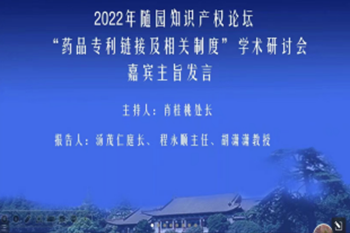 2022年11月25日下午,我院胡潇潇副教授应邀参加了由南京师范大学、南京市市场监督管理局、南京知识产权法庭以及江苏省知识产权保护与发展研究院共同举办的2022年随园知识产权论坛暨“药品专利链接及相关制度”学术研讨会并在开幕式后的主旨演讲环节做了主旨发言。另外两位受邀进行主旨演讲的嘉宾分别是江苏省高级人民法院知识产权庭汤茂仁庭长和曾任北京市高级人民法院知识产权庭副庭长、现任北京务实知识产权发展中心主任的程永顺法官。论坛邀请了来自中南林业科技大学、西南政法大学、华东政法大学、南京师范大学、苏州大学、南京中医药大学等高校的学者以及江苏省高级人民法院、南京市中级人民法院、南京市知识产权局、阿斯利康制药有限公司、江苏恒瑞医药股份有限公司、扬子江药业集团有限公司、北京务实知识产权发展中心、金杜律师事务所、国浩律师事务所、南京知识律师事务所等实务部门的专家、企业和服务机构的代表与会。会议开幕式由南京师范大学科学技术研究院院长李亚飞教授主持。南京师范大学党委贲国栋副书记、南京市知识产权局何华英副局长代表会议主办方致辞。