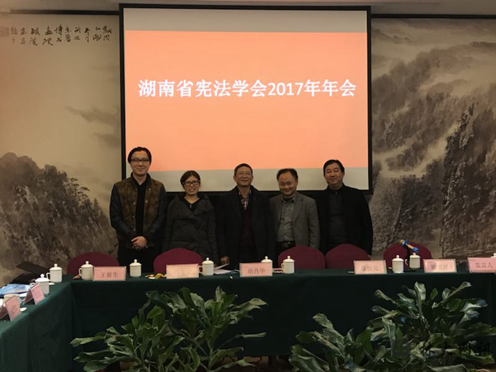 由宪法学研究会主办,衡阳市人民政府法制办承办的2017湖南省宪法学会年会及“宪法与国家监察立法”研讨会,于2017年十二月十五至十七日在衡阳南岳成功举办。湖南省政府法制办张建华副主任、衡阳市人大常委会法工委廖桂元主任、湘潭大学胡肖华教授,以及我院我院张小罗教授、李军副教授带领宪法与行政法学法学专业研究生出席本次年会。会议主题主要有:监察立法专题、地方立法专题与反腐败立法。我校政法学院张小罗教授主持地方立法专题讨论;李军副教授就地方立法谈了自己立法经历和个人观点。
