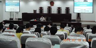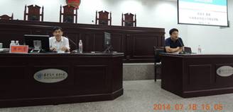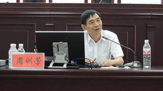7月18日下午,中南林业科技大学政法学院院长周训芳教授莅临湘潭大学法学院,在法学院西附一楼模拟法庭为学校主办的“法治湖南建设与区域社会治理”暑期学校的学员作了一场题为“生态文明的法律制度安排及其司法保障”的学术讲座。讲座由湘潭大学法学院副院长吴勇教授主持,暑期学校全体学员和法学院部分师生参加了讲座。