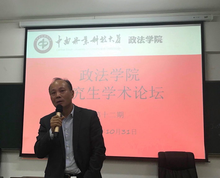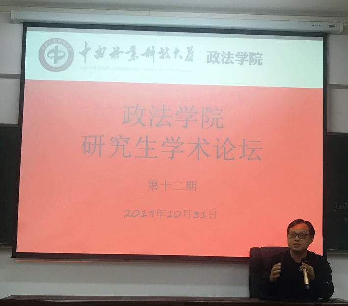 10月31日晚7点,政法学院第十二期研究生学术论坛在博文楼1105教室举行。本次论坛,2018级研究生胡锦华、2019级研究生曹若男和2019级研究生陈诗分别以《自动驾驶汽车侵权责任分析》、《非法放贷入刑》、《隔代探望权的限制及其发展》为题进行了分享和报告。政法学院党委书记闫昌明、院长王飞跃、阳永恒副教授、李敏副教授及全体研究生到场参加论坛。