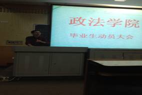 9月24日晚,我院2011级毕业生动员大会在五教学楼阶梯教室召开。出席本次大会的有学院长周训芳,党委书记朱朝晖,党委副书记欧阳洪毅,辅导员梁旭老师以及学院2011级全体学生。会议由欧阳洪毅主持。