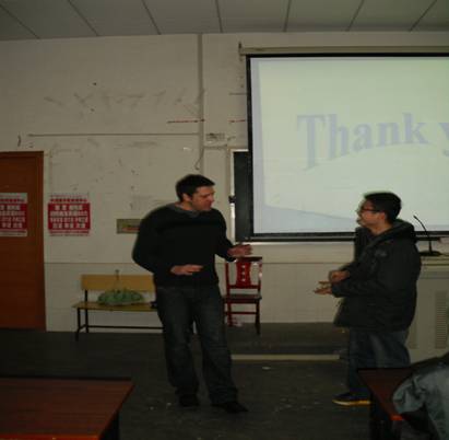 4月7日晚7点,一场由政法学院分团委学生会大学生职业发展部主办,以攻克英语四六级考试为主题的讲座在经干一教二楼阶梯教室举行,主讲人是来自我校外语培训中心的杜鹃老师和外教Norbi。政法学院分团委学生会主席团成员和2010级同学都参加了本次讲座。整场讲座分为两部分:上半场由杜鹃老师为我们讲解英语学习过程中的一些技巧,下半场则由Norbi与现场的同学进行英语互动。