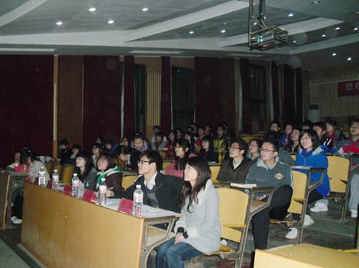 主持人简短的开场白后,由谢老师致辞,谢老师谈到,寝室是我们休憩的摇篮、歇脚的驿站,是我们的第二个家。良好的生活环境和融洽的寝室气氛是当代大学生综合素质能力的侧面体现,谢老师还对本次参赛队伍付出的努力给予了充分肯定。参赛队伍的ppt中可以看出同学们花费了不少精力。寝室的一方小天地,在他们精心的装饰下变得五彩斑斓,充满了温馨和情趣。在“现场问答”这一环节中,同学们倾注了极大的热情,智慧的火花各处闪现,赛场被温馨、幽默、热情的气氛包围。