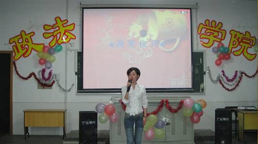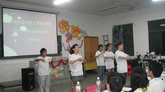 2010年6月1日,在经干一教多媒体教室,政法学院分团委学生会第一届学生骨干培训班文艺汇演隆重举行,政法学院分团委书记曾文老师、政法学院辅导员老师梁旭、谢丽娟及学生会主席团成员出席了此次晚会,与培训班学员一起共渡了这个充满收获和欢乐的夜晚。