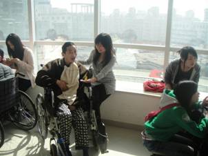 二十五日下午,阳光明媚,春暖花开,09行政管理1班的同学乘车来到了省第一福利院,以多种形式开展“学雷锋”慰问老人活动!刚进福利院,嗲嗲娭毑们都还在午睡,于是同学们在征询护士的同意之后在走廊上静等。在福利院有关负责人的带领下,同学们开始分散开来慰问疗养室里的老人,有的帮助打扫卫生,有的在陪娭毑们聊天,有的在给嗲嗲们唱歌,还有的听起了老人们讲述当年的峥嵘岁月,有的则推着轮椅带老人们出去晒太阳,疗养院四周都充满了老人们的欢声笑语。
